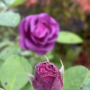 今日のバラ🌹🌹pic VOL2 朝霜で白く縁取られたラプソディインブルーの蕾&花