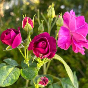 ピンクの香り薔薇とても良い香りがします名前覚えるまえにタグを草狩機でメタメタにしてしまい名無しさんに😆 した2つの薔薇似てますよね💜💜 左がブルーフォーユー 右がラプソディインブルーです😄 どっちも素敵✨ ブルーフォーユー夕日をバックに綺麗に撮れました💓