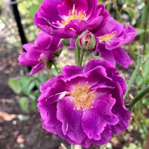 今朝のバラ🌹🌹pic。小さな蕾もあり,咲いてますラプソディインブルー。