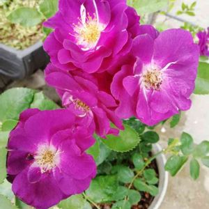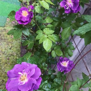 ラプソディインブルー❣️青紫が濃く出てとても素敵な存在感のあるバラ🌹💜 香りも良いので日陰の塀側が賑やかになります🥰 花もちは悪くて咲いてから2日目から色褪せて散ります😅