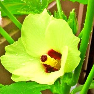 大きなオクラ 通り道のお宅の畑に 朝の散歩道