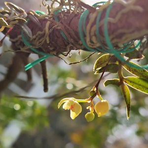 雌雄異株 花は壺型 直径3~5mmほど 葉の脇にクリーム色の花が まとまって下向きに咲く 🐽花はプロパンガスのような 匂いがします(クサイ) 姫榊(ひさかき) モッコク科
