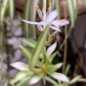 オリヅルラン、 今年初の小さなお花が咲きました! アップでと思うとやっぱりボケてますね〜🤭