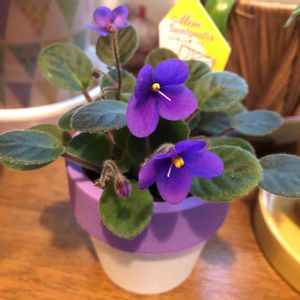 ミニセントポーリア💜 最初は造花かと思った😓 本物だった✨ とーっても小さな鉢に小さな葉っぱと花。 大切に育てよう♡