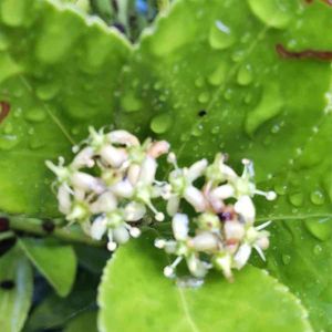 今日は一日 雨☔️ふりです レモータ(クラッスラ属) 産毛の入ったペパーミント色の葉っぱも 爽やかでキュンとなるのに~ 小さな花の中心は紅のね~ 可愛い💕ですね~ 初めて見ました👀🔰