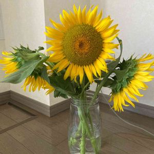 ウチに持ち帰ったひまわり🌻は元気です お花屋さんで買うと400円近いらしい ラッキー😆
