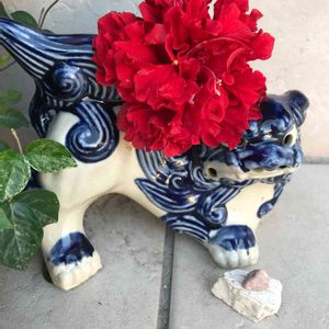 子供がシーサーにお供えしてました😊 石のショートケーキだそうです🍰 ハイビスカスはカーネーション🌺