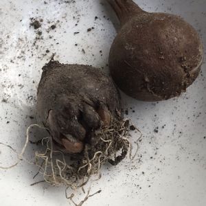 これ。初めて見て凄くびっくりしました‼️ 何か産んでいるみたいに、沢山で🟣🟣🟣 何度見ても、ゾッとしちゃう。 ごめんなさい。 ムスカリの分球です。 今日はプランターの土をフルイに掛けて、小さな分球を探しました。 散らばった分球は5ミリ位の小ささで、探すのって大変なのですね。 でも凄く綺麗なムスカリなので、一つ残らず取り出したくて頑張りました❤️