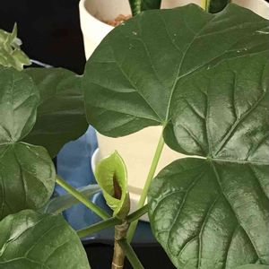 連日暑いですね〜🎐 ご自愛下さいね🍧 今日はキュるキュるっと格好良い新芽でした。 我が家のウンベラータ、なかなか大きく育ちません。