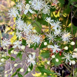 夕陽が当たりキラキラ✨… 可愛いすぎます!♡(*´꒳`*) このコも会いたかった植物デス💓 「リュウキュウボタンヅル」琉球牡丹蔓 キンポウゲ科 別名・ケボタンヅル、タイワンボタンヅル