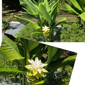 カンナの葉に似ている大きな葉 暑い日に眩しい色合いでした!