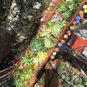 初めてのギャザリングにチャレンジ💡 ヒモ状の水苔を使用。 土台にも土は使わず、普通の水苔を敷き詰めて寄せ植え♪♪ 全て根っこ付きの多肉さん達なので超簡単・安心な寄せ植え✨ 花材と言うのかな? お花屋さんで見つけたこの器に一目惚れして譲ってもらったんだけど… いざ作ると、我が家にはデカかった(^◇^;)💦 けどね💡 このギャザリング、多肉さんの成長がユックリとなるから形も崩れにくいらしいです💡(☜結構、ポイント✨) そして、ネルソル程ではないにしても、作ってスグに縦に立てかけても多肉さんが落ちなぁい💕(☜かなり、ポイント✨✨) うんうん(•͈⌔•͈⑅)♡ この水苔は正解でしたぁヽ(゚∀゚)ノ あとは、隙間にセダムを詰め詰めして、クリスマスっぽいピックで飾り付けしなきゃぁ((* ´艸`)) 需要があるようでしたら、どんなヒモ状の水苔かアップしますね(*≧艸≦)