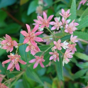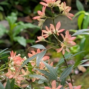 クリスマスブッシュ オーストラリア原産の常緑植物で、現地では11月〜1月頃にガクが赤く星型に見えるのでクリスマスを告げる花として親しまれています〜日本は初夏くらいに赤くなります〜少し赤くなって来てるのを見つけました〜✨今年は花数多め🤍🤍🤍🤍🤍✨✨