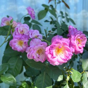 ブルー様 今年はハダニ対策もバッチリで、この時期でも葉っぱがモサモサ😊 花もつけてくれてます。 ただ、夏の高温期はやはり成長が早くて小ぶりで、色が薄い🤣ピンクフォーユーになってます🌹 去年までは、色んな薬剤をローテして、それでもダメで、この時期には葉っぱが数枚のハゲ丸だったのに、薬剤使わず水シャワーだけで克服できて、お金もかからず良い子です♪ 黒星病も無しで、素晴らしい♪