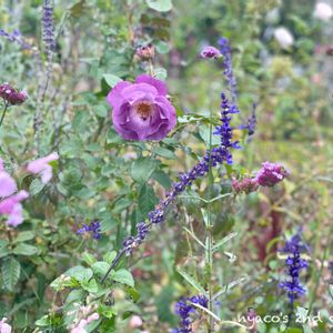 バラ ブルーフォーユーさん💕 夏の頃咲いていたお花とは全く違う色のお花を咲かせてくれました💜 でも東側にいるブルーフォーユーさん、少し暗すぎますね💧