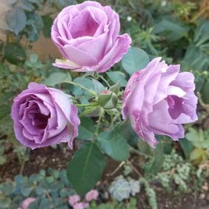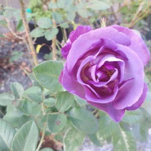 渋〜い❣️ブルーフォーユー🌹です。 春に新苗買って夏はあまり花咲かせず、何とか秋にたどり着きました❣️ ピンチのタイミングが良くなかったかも。来年は一回り大きい薔薇になるよう頑張ります😃