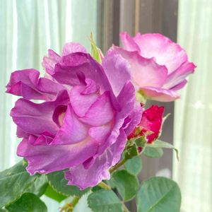 ブルーフォーユー🌹 新苗なので、今までは蕾は殆ど摘んでいました。そろそろ咲かせても良いかなぁ😊 ピンク色?いやパープル?微妙な色合いが楽しめます❣️