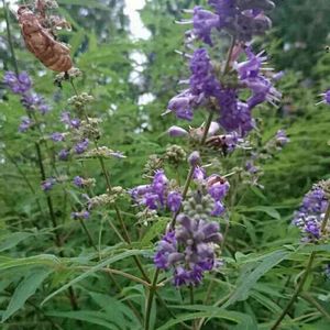 こんばんは😃🌃 近くの公園の小さなハーブ園でセイヨウニンジンボクの花が沢山咲いています🎵 先っぽにセミの脱け殻が(^-^ゞ夏ですね☀