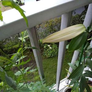 オリエンタルユリ マルコポーロ 秋に球根でお迎えしたユリ、 やっと咲きました😃🎶 茎が細く、花芽も小さかったので、期待薄だったので、うれしいです☺️
