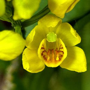 キンラン(金蘭) ラン科 キンラン属 山野の広葉樹林内に生える(本州〜九州) 高さ40〜80cm 花期 6〜8月 葉は互生し、長さ8〜15cm、幅は2〜4.5cmで、広披針形で数脈があり、基部は茎を抱く 花は黄色で半開する 側花弁はやや小さく唇弁は3裂する 直径1cmくらいの花を3〜10個つける 個体は4株ほど見つけました 絶滅危惧種に選定されていて、極めて少ないです 4/26 撮影