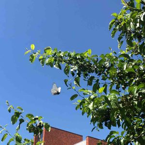 こんにちは。 今日の札幌はお昼過ぎまで快晴☀️ 気温も30度に達し真夏日と なりました。 ズミの木の花が散り、 さくらんぼ🍒のような小さい実が なってきました。 ズミの木には蝶々🦋が たくさん集まってきます。