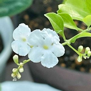 おはよーございます♪🎶😄 デュランタホワイトラブ❤️が咲き出しました💚 鉢植え🪴だったので冬越し心配でしたが、見事に咲いてくれました👏 ありがとねー🥹💕 5️⃣枚目👀 タイタンが初開花から18個目❣️