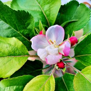 庭でリンゴの花が咲いてました。早すぎるよ~。
