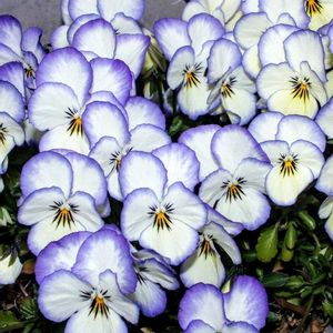 鉢植えのパンジーの花が綺麗に咲いていました。