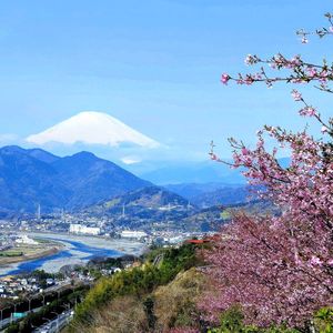 神奈川県松田からの河津桜に囲まれた富士山です。
