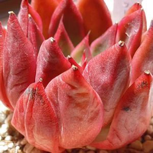 多肉さんご紹介160 レッドアガボイデス2301 秋にはしっかりお水も与えたつもり。。。 シワシワのままで🙄 色は、中まで真っ赤🍎 なんとかかわいい形にしたいなぁ~ この子は、お外放置組! 撮影のためにライト下へ🔦