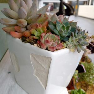 夏の間に寄せ植えの多肉をジュレさせて 禿げた空間をセダムで隠していると言っていたら @ひなこひなたさんが 『ウィンドオブチェンジ』と 『相府連×コロラータ』 『シュガージェリー』 『エンジェルスフィンガー』 を届けて下さいました💕 その中から2つ選んで寄せ直ししました♪ そして@多肉ちゃん鉢の復活です😄🎶
