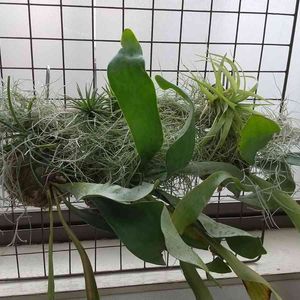 🌿増える植物対策2022🌿 苔玉ビカクシダとエアプランツ をフックや流木を使って、 壁面に飾りました😊 ※水やりの時に、簡単に外せ、 悪天候時には、すぐに取り込めめるように作成