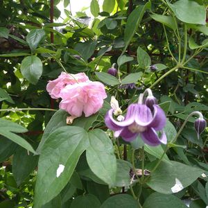 6月を振り返って バラとクレマチスでしょうか😅 クルリンとはねた花びらが可愛いですね🎵 他にも赤紫っぽい色のものも有りました😊 バラと仲良く咲いていました😆✌️ 2023•6•4二宮家にて撮影