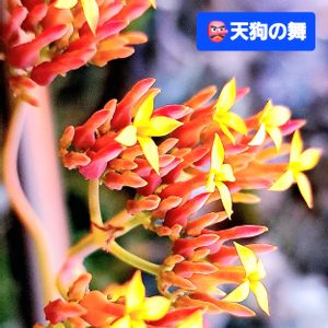 おはようございます☔😃☔ 天狗の舞(クラッスラ族)👺 普段は鼻高だけど華のないテングさん、長~いランナーの先に花が咲きました💃多分4度目の秋 .。o○🏵 よい一日を🐬.。o○🌈🌏