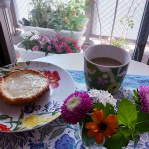 新しいパン屋さんのチーズパン🍞とコーヒー☕️ 新しいミントさんを摘んで食卓へ いい香り💕 爽やかな朝食になりました🌿🌿🌿