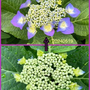 おはようございます😃 ※投稿してから気づきました。日にちが、1️⃣2️⃣とも上が5/25で下が5/19でした( ̄∇ ̄*)ゞ 我が家の紫陽花が色づきだしました🟣 中のつぼみ達も咲いたらまた可愛らしくなりそうです。 紫のガクアジサイは、去年は3個位しか花芽つきませんでしたが、今年は10個以上付いてて嬉しいです。 白い 多分スミタノハナビは、白の花がうっすら淡い紫になってます。 ヒペリカムの黄色と賑やかな小庭になりそうです☘️
