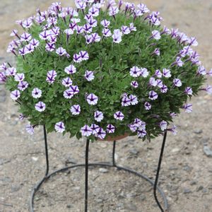 2025.9.22☀️(12℃~25℃) 挿し芽ハンギング スーパーチュニアビスタミニブルースター ポンポン咲くペチュニア 3本の挿し芽がこんなにもりもりになりました (右下に)シレネの挿し芽が埋もれています🍀*゜
