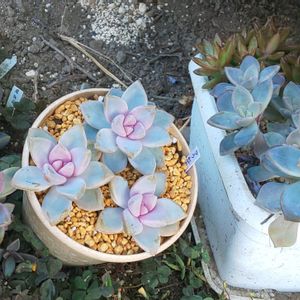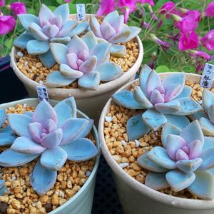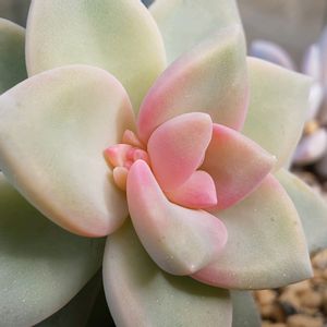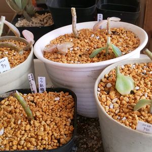 エケベリア ララ紅朧月錦桜斑 最近、ララさんの株が充実してきたらしく 脇から子株が出てくるようになったよ✨ お子様は最初、白~ピンクになるのよね 一年中何時でもこの色になります 大きくなるとグラプト色になるんだけど 紅葉は綺麗なピンクになります 朧月と何かの交配だと思うけどその何かは ティテュバンス錦じゃないのかなぁ...と思ってる 形は斑抜けのティテュバンスにそっくりです 朧月ほど大きくはならず大きさ形はティテュバンス斑抜けそっくりなんだよね🤔 この桜色のお子様はほんと可愛いぞぉ🤣 今親株が20くらいに増えたw 小さい子は50株くらい増えたよぉ💪