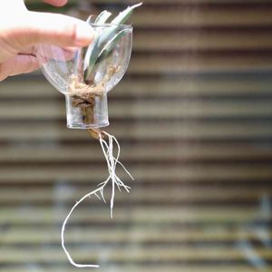Agave 'black & blue' まだ根が出ていないのに植え替え時に外れてしまったカキコちゃん。 水耕栽培でチョロっと根が出てから26日目。 フサフサ良い感じになってきました。 今日は鉢上げしよっと。
