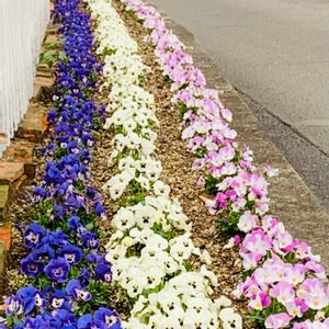 ♡ ビオラ ♡ ・ソルベ デルフトブルー ・ソルベ ホワイトブロッチ ・ソルベ ピンクウィング 10/2 種蒔き 10/16 ポット上げ 11/23 頃から花壇に定植 寒さの中 けな気に 小さなお花を咲かせています。 見るたびに 励まされます。