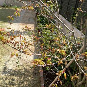 いつの間にやら、紅葉の葉がたくさん開いていました。春が近づいているのですね✨ そして、少しずつ頑張っているようですが早く緑の芝が見たいです😊