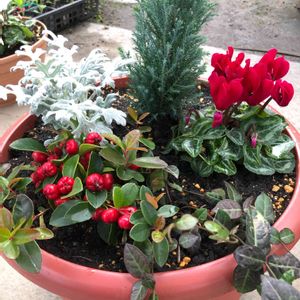 クリスマスの寄せ植え 🎅🎄✨💫🎁 赤いシクラメンが欲しくていつもの農園さんへ😊 チェッカーベリーがいい感じ✨