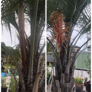 今年造園会社の方に植えてもらった ココスヤシ🌴です ふと見たらなんと 4月17日に槍のような突起物を発見し観察してきました😸 やっと花が咲いてくれました💕🌼 BIGな花です✨😸 この後どのように花が開いてくれるのか楽しみです😸💕