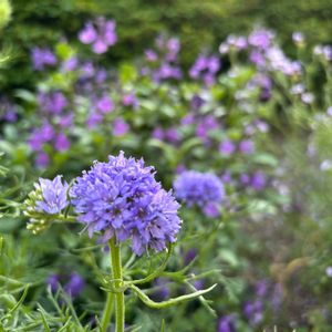 ギリア•レプタンサ 奥にはチェリーセージ となりにギリア•トリコロール 今春の庭は紫のお花が集まりました もうすぐオルレア🤍とカモミール🤍💛も咲きます 初めて種まきしたニゲラはどんな色を咲かせてくれるのだろう