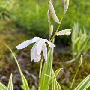 今日は朝から雨です☔ 今日のお花のシラン 我が家のシランはとっくに咲き終わってしまいましたが 昨日実家では、白と紫とまだたくさん咲いていました🤍💜
