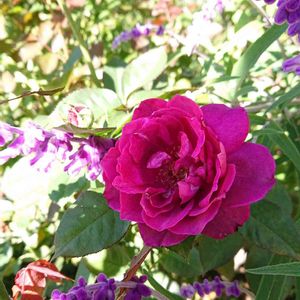 アメジストセージが伸びて、隠れるように咲いていたイントゥリーグ🌹 もう少し早めに見つけてあげれば良かったなぁ😂