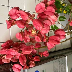 タイワンモクゲンジのお花と実、一緒に落ちていました。黄色いお花がピンクの実へ変身🌼💗✨✨