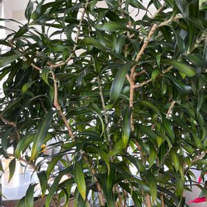 ドラセナソングオブジャマイカ🇯🇲大好きな植物です〜😊斑入りの葉っぱとクネクネした枝が個性的です〜😊どんな形に大きくなるか楽しみです😊 Jamaicaの陽気で楽しい風を感じます😃 科・属:リュウゼツラン科ドラセナ属 和名:ドラセナ・ソング・オブ・ジャマイカ 英名:Dracaena Song of Jamaica 学名:Dracaena reflexa cv.Song of Jamaica 原産地:マダガスカル、モーリシャス、アフリカ東部 ドラセナソングオブジャマイカは、ドラセナ・レフレクサから派生した園芸品種です。葉は濃い緑を基調に、内側にクリーム色のストライプが入るのが特徴で、葉先までなめらかに伸びた優雅な姿をしています。このストライプ模様がソングオブインディアと異なり、全体的に落ち着いた印象を与えます。 成長すると高さ2~3メートルほどに達することもあり、観葉植物としては中型~大型に分類されます。耐陰性が高く、室内の弱い光でも育つため、リビングやオフィスなど幅広い環境に適しています。また、乾燥に強く初心者でも育てやすい植物です。 ドラセナソングオブジャマイカはインテリア性が高い一方、空気清浄効果も期待できる観葉植物として注目されています。丈夫な性質を持ち、育てる手間が少ないため、忙しい方や初めて観葉植物を育てる方におすすめです。 ドラセナソングオブジャマイカの風水効果 ドラセナソングオブジャマイカは、風水的に「調和」と「気の浄化」に効果があるとされています。濃い緑とクリーム色のストライプ模様が美しい葉は、空間に調和をもたらし、周囲の気を整える力があると考えられています。そのため、リビングや仕事場など、気を安定させたい場所に適しています。 また、葉先が尖っている植物は風水で「邪気払い」の効果があるとされ、ドラセナソングオブジャマイカも例外ではありません。玄関や廊下、部屋の隅など、気が滞りやすい場所に置くことで悪い気を払うとされています。特に玄関に置くと、良い運気を呼び込み、家全体に調和をもたらしてくれるでしょう。 さらに、ドラセナは「生命力」の象徴ともされ、風水的には新しいエネルギーを運んできてくれる植物とされています。金運や仕事運を向上させたい場合は、北や東の方角に配置するとより良い効果が期待できます。植物のエネルギーを最大限に引き出すためには、健康に育て、葉が美しい状態を保つことが大切です。 ドラセナソングオブジャマイカの花言葉 ドラセナソングオブジャマイカの花言葉は、「幸福」「誠実」「開運」「長寿」です。 これらの花言葉は、ドラセナ属の植物全般に共通しており、その美しい葉姿と丈夫さが、幸福感や繁栄、長寿を象徴していることに由来します。 「幸福」や「開運」という花言葉は、ポジティブなエネルギーを与える観葉植物として、部屋に飾るだけで運気を向上させる効果が期待されます。また、「誠実」は、その力強い成長と変わらない美しさを表し、「長寿」は、手入れ次第で長く楽しむことができることを示唆しています。