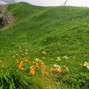 礼文島で 出会いました エゾシシウド エゾキスゲ 強風の 断崖に 咲いていました