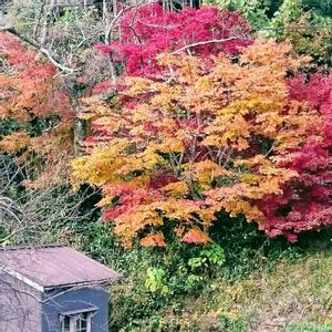おはようございます((o(^∇^)o)) 鶏足寺③です。 綺麗な川で佇み、クルっと振り返れば、この景色🎵素晴らしい🎵 多分、日本全国によくあるワンシーンだとは思いますが、凄く良かったデス❤ 小屋🏠と紅葉🍁~~なんでか好き❤